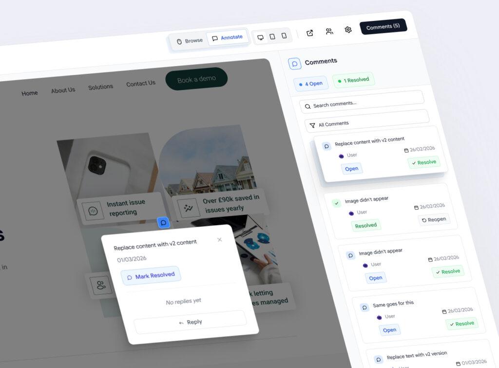 Click anywhere, add feedback, and collaborate with your team—no screenshots, no messy threads.