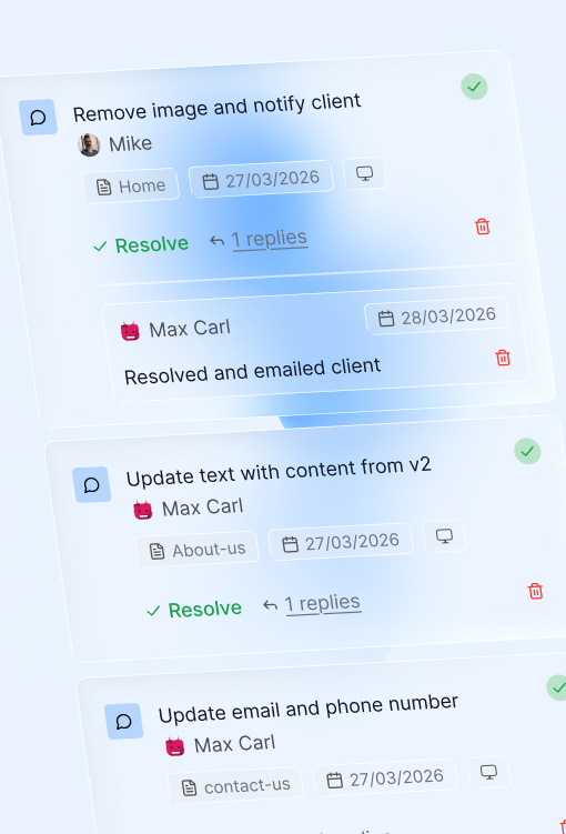 Every comment stays tied to the exact element it was left on. Replies, updates, and resolutions all live in one thread so nothing gets lost or misunderstood.